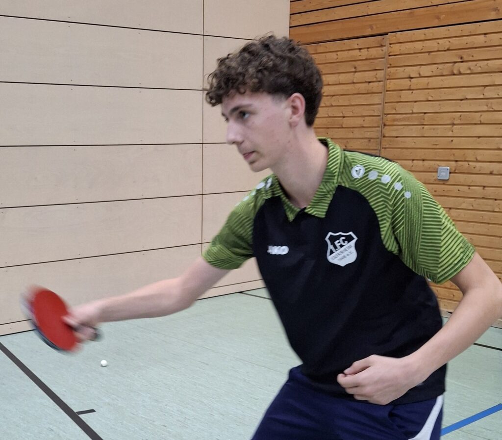 ein verdientes Remis. Kurz vor Schluss führte der Gastgeber noch mit 7:5, doch durch drei Endspurtsiege von Josef Fuchs, Jonas Grein und dem Doppel Ian Kühnl/Vinzenz Steffel schaffte man das sensationelle 8:8. Die fünf Siege zuvor gingen auf das Konto von wiederum Kühnl/Steffel, Patrick Schmitt (2x im vorderen Paarkreuz ! ), Ian Kühnl und Vinzenz Steffel. Wie ausgeglichen die Begegnung insgesamt war, zeigt auch der Satzgleichstand von 29:29.